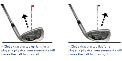 When custom building irons and wedges, club lie is a determining factor for both shot direction and distance. Clubs that are too upright or flat will produce offline shots that will usually fall short of the intended target.